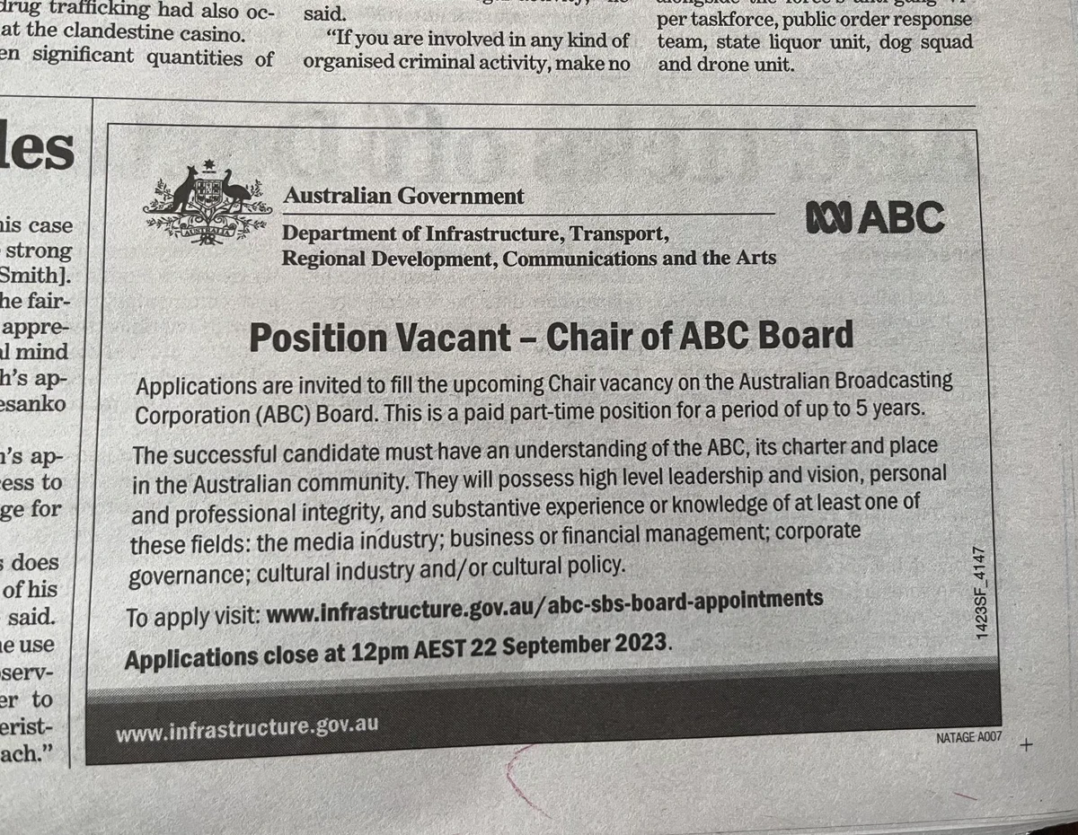 The problem with the advert as posted in the newspaper is that the scope of the dragnet that they are looking for, is as shallow as the ASX200. The person whom they are going to get will either be some boring boring exec, or some deeply tory time bomb; when what they need is a Jurgen Klopp, a Willy Wonka, a Xanatos, or a PT Barnham.